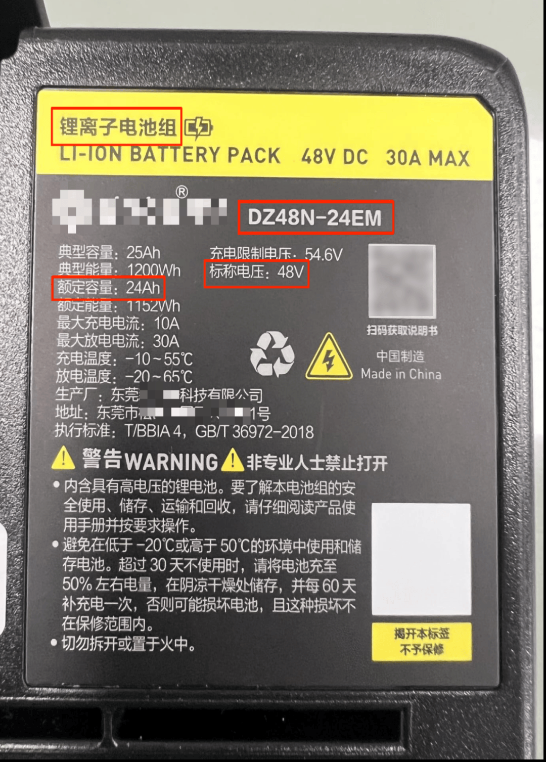 查抄能否短安拆。仿单输出端安拆规格为25A,的电池输出端安拆规格为32A。a)产物型号!电动自行车及格证上锂离子蓄电池的产物名称取型号要取其蓄电池铭牌上的产物名称取型号连结分歧;b)标称电压!锂离子蓄电池铭牌上应有标称电压取额定容量,此中标称电压应≤48V。标称电压大于48V的锂离子蓄电池不克不及用于电动自行车上;