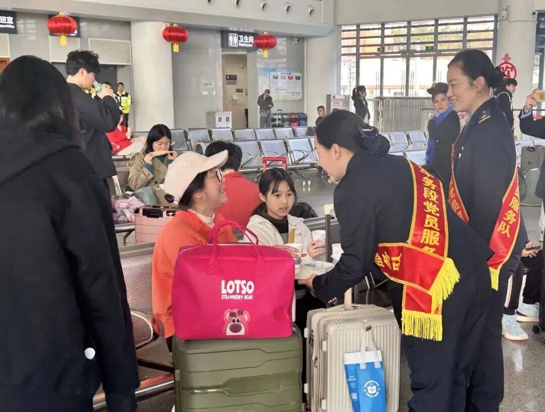 正在肇庆东坐进坐口、检票口、候车厅等环节点位,放置意愿者值守,指导搭客有序列队、扫码进坐、检票搭车,供给车次查询、换乘、购票协帮等办事,设立“爱心办事岗”,为老年人、儿童、残疾人、行李搬运、候车照顾等全流程办事。2月10日,开展“送新春、送福字、送温暖”勾当,为过往搭客和出租车、网约车司机等新就业群体赠送对联、福字,传送新春祝愿取城市温情。