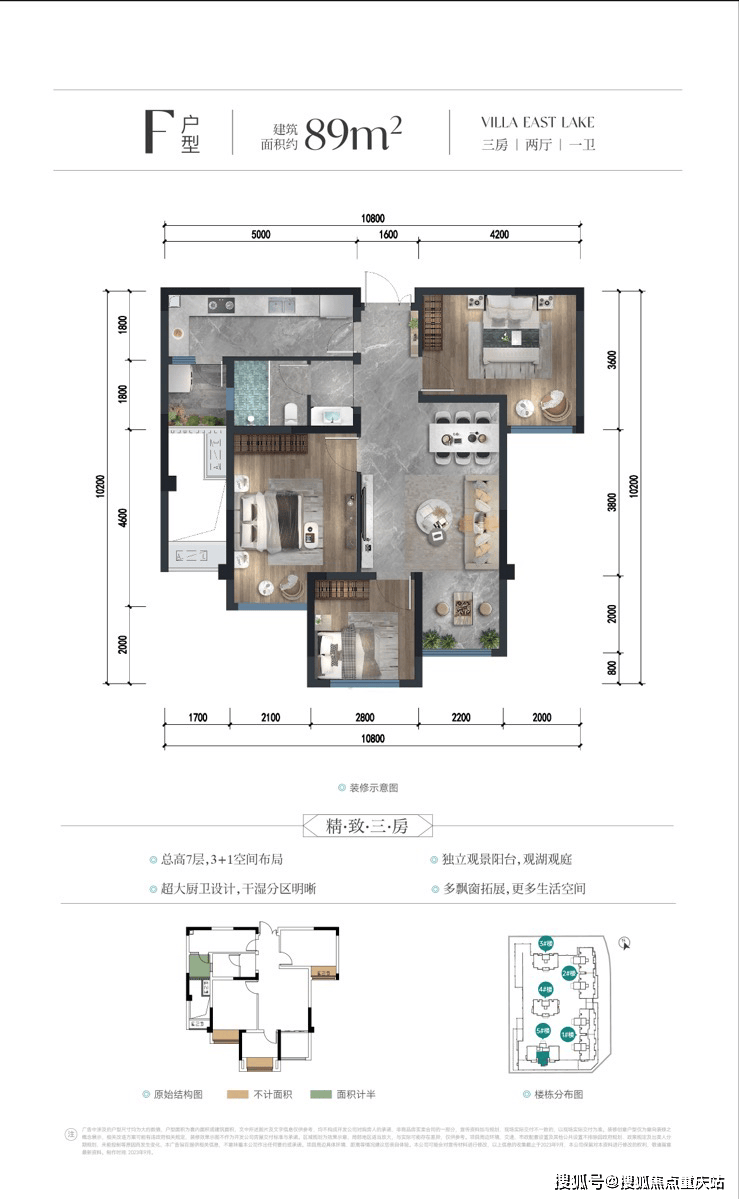 ·总高7层,3+1空间结构 ·不雅景阳台,不雅湖不雅庭 ·超大厨卫设想,干湿分区了了·多飘窗拓展,更多糊口空间